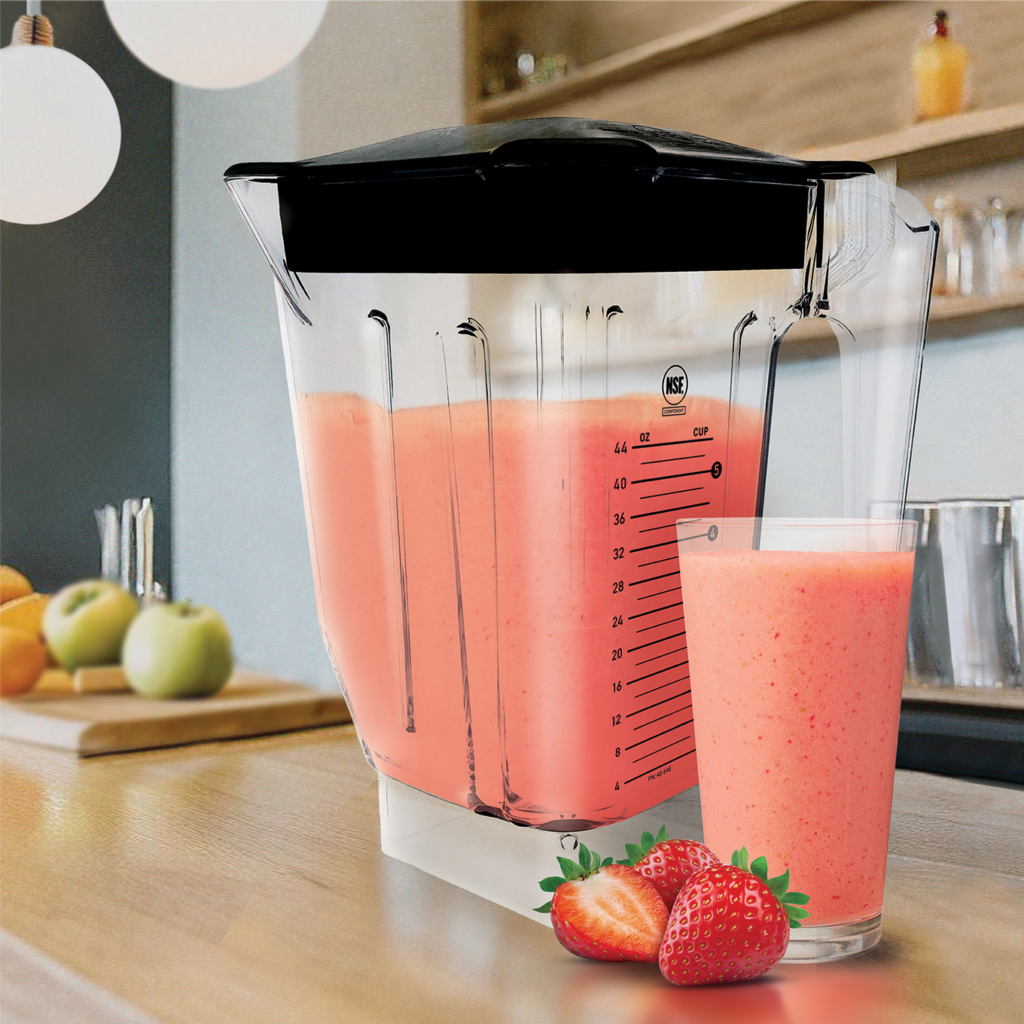 - Slīpie stūri samazina krūzes pamatnes virsmas laukumu, tādējādi sastāvdaļas tiek labāk novirzītas uz asmens, mazinot gaisa burbuļu veidošanos un nepieciešamību veikt atkārtotu blendēšanu. Mazāka pamatne ļauj pagatavot mazākas porcijas.